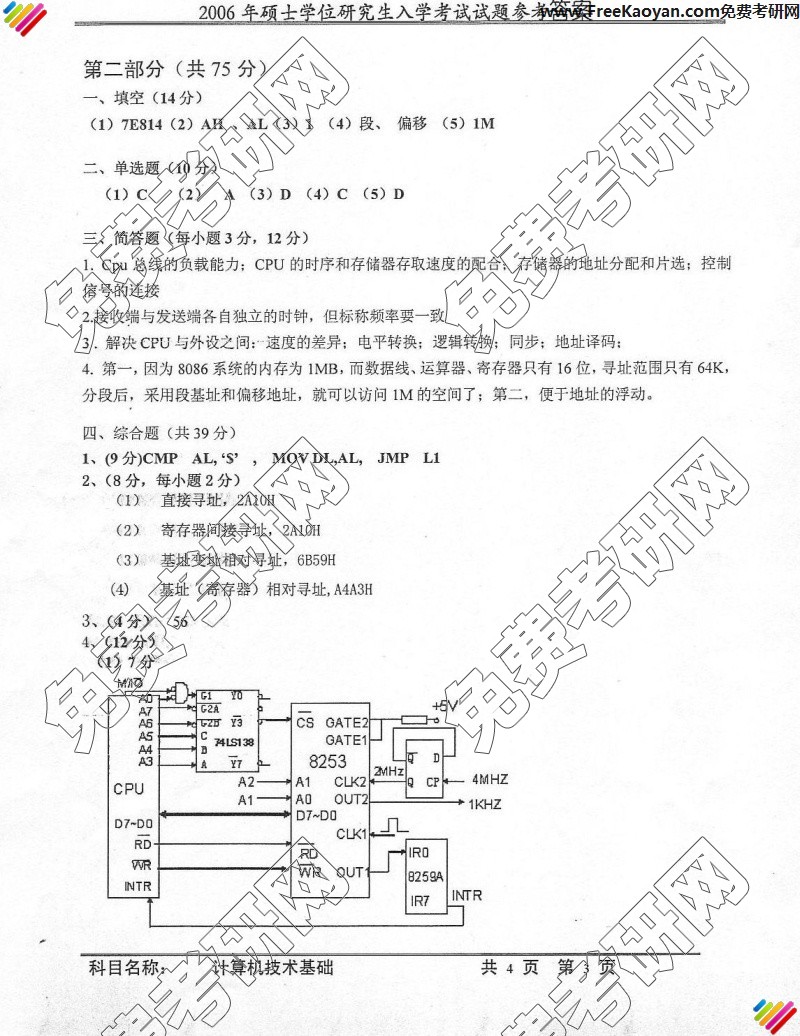 专业课考研经验 本站小编 FreeKaoyan 2018-01-22中国科学技术大学2006年考研真题-计算机技术基础