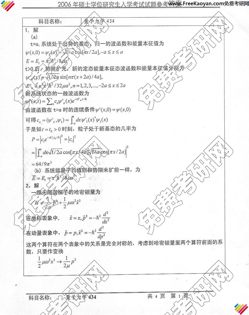 专业课考研经验 本站小编 FreeKaoyan 2018-01-22中国科学技术大学2006年考研真题-量子力学