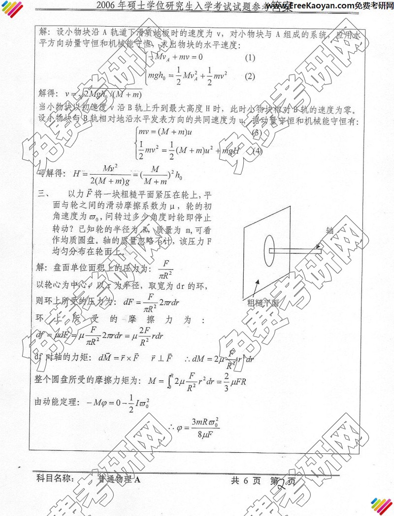 专业课考研经验 本站小编 FreeKaoyan 2018-01-22中国科学技术大学2006年考研真题-普通物理A