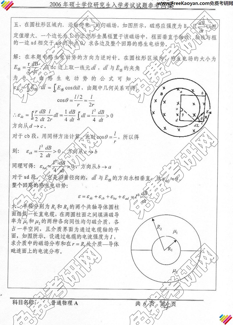 专业课考研经验 本站小编 FreeKaoyan 2018-01-22中国科学技术大学2006年考研真题-普通物理A