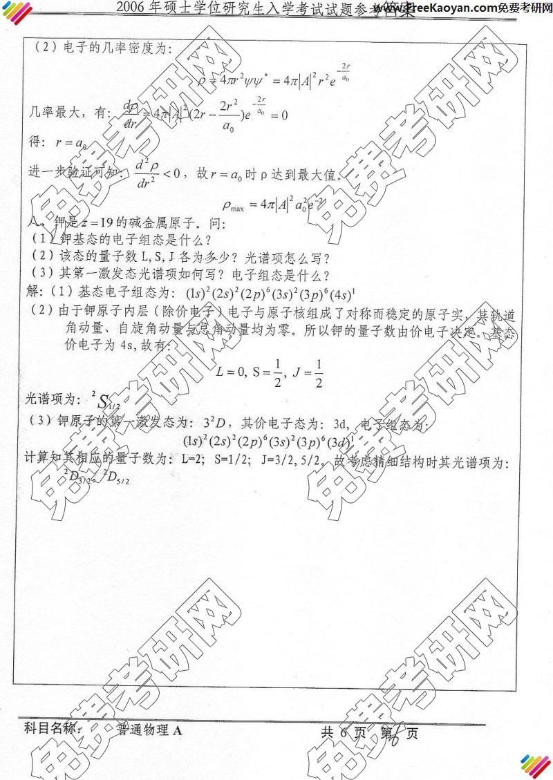 专业课考研经验 本站小编 FreeKaoyan 2018-01-22中国科学技术大学2006年考研真题-普通物理A
