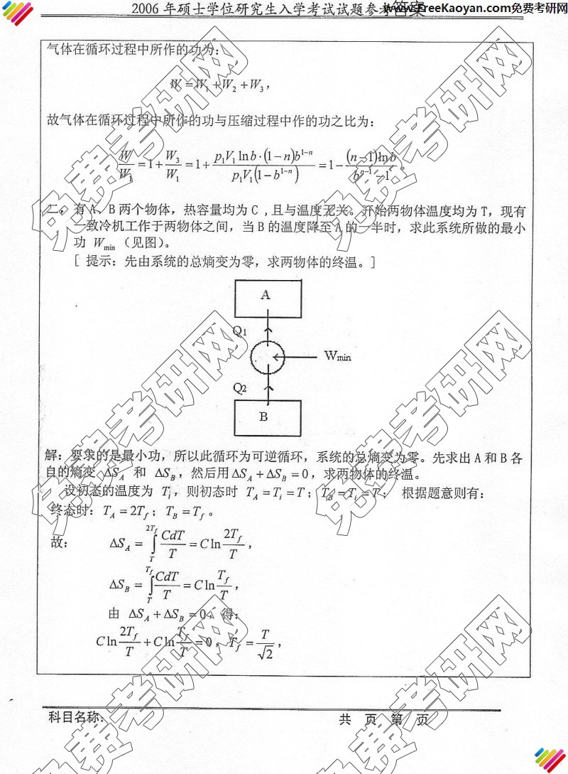 专业课考研经验 本站小编 FreeKaoyan 2018-01-22中国科学技术大学2006年考研真题-热工基础
