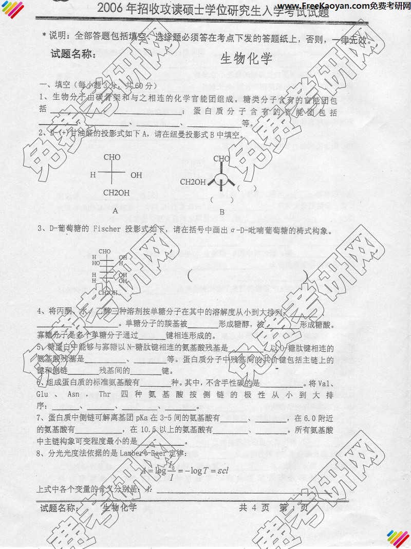 中国科学技术大学2006年考研真题-生物化学