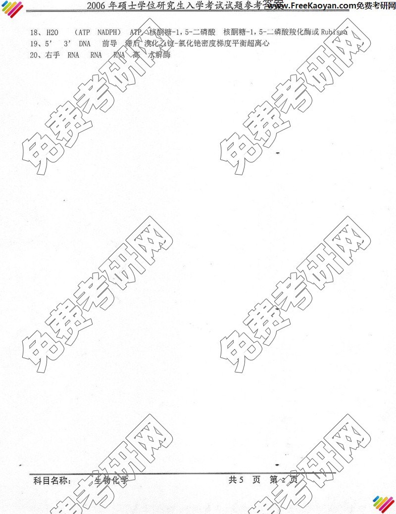 中国科学技术大学2006年考研真题-生物化学答案(2)