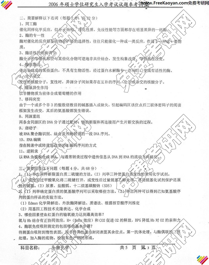 中国科学技术大学2006年考研真题-生物化学答案(3)