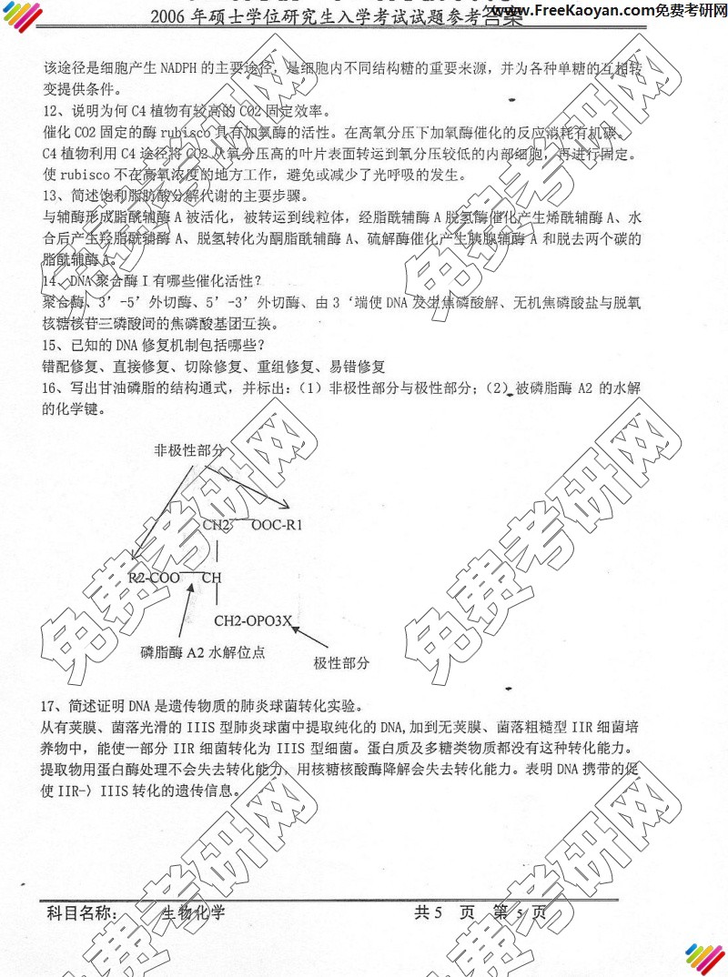 中国科学技术大学2006年考研真题-生物化学答案(5)