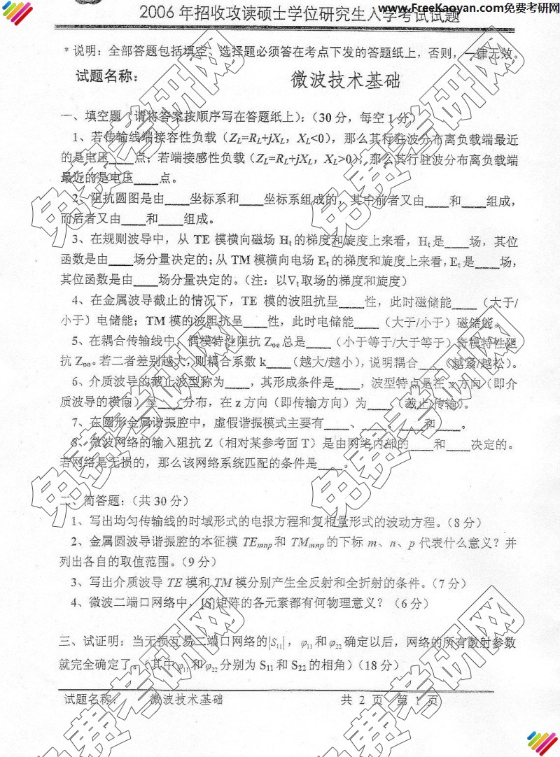 相关话题/考研真题 中国科学技术大学 微波 基础 技术