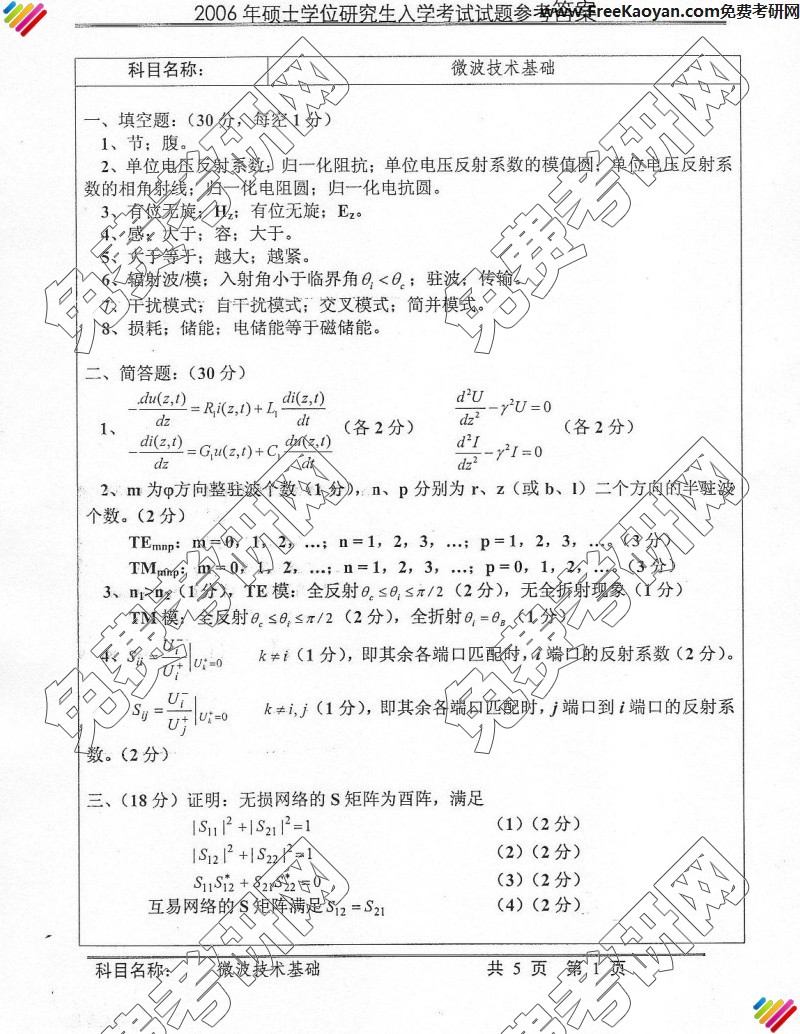 相关话题/微波 考研真题 技术 中国科学技术大学 基础