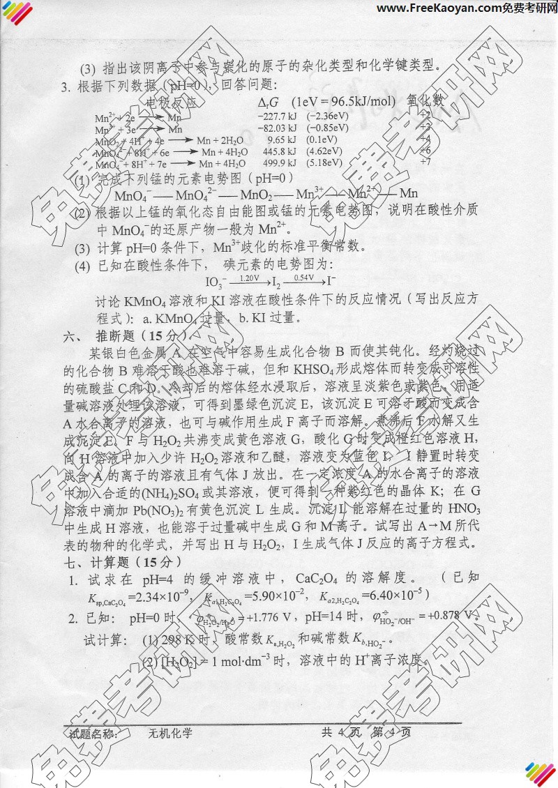 专业课考研经验 本站小编 FreeKaoyan 2018-01-22中国科学技术大学2006年考研真题-普通化学答案
