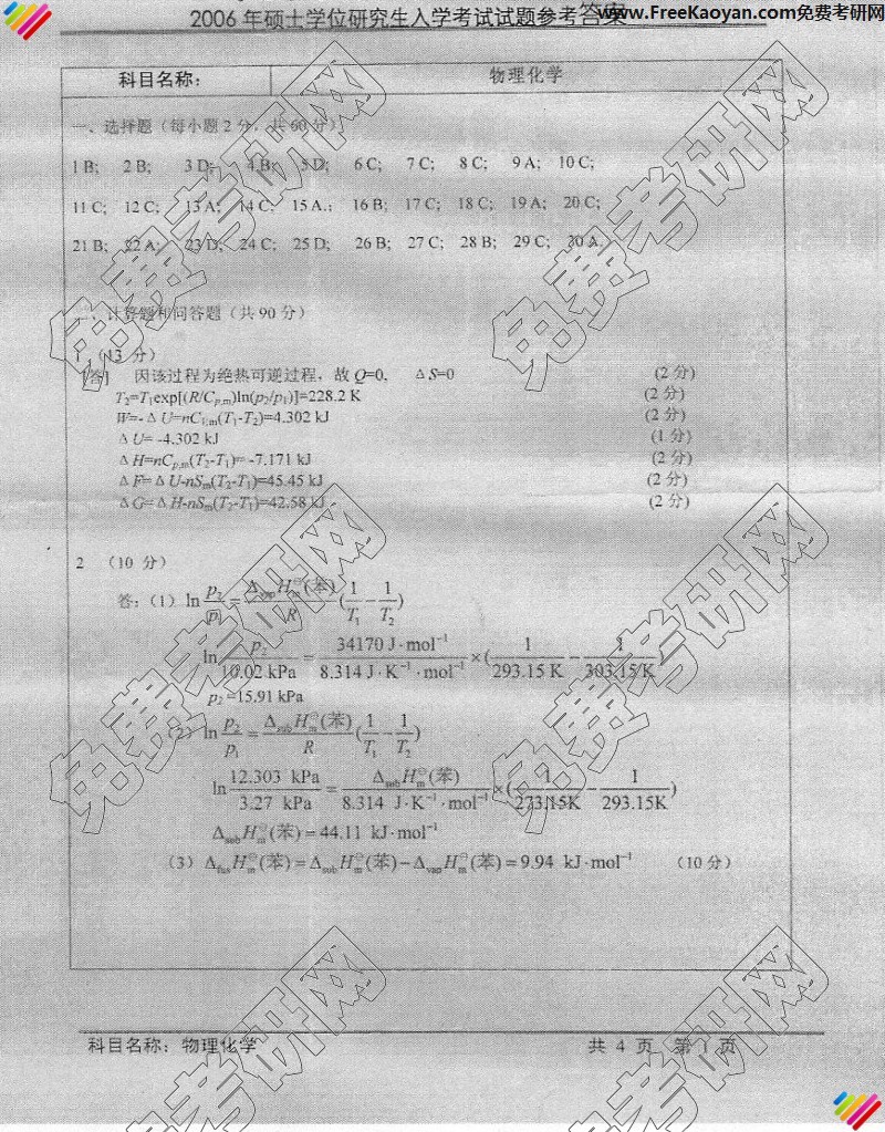 相关话题/考研真题 物理化学 中国科学技术大学 答案