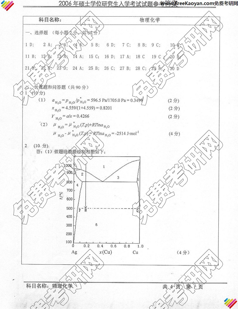 专业课考研经验 本站小编 FreeKaoyan 2018-01-22中国科学技术大学2006年考研真题-物理化学B答案