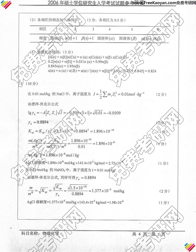 专业课考研经验 本站小编 FreeKaoyan 2018-01-22中国科学技术大学2006年考研真题-物理化学B答案