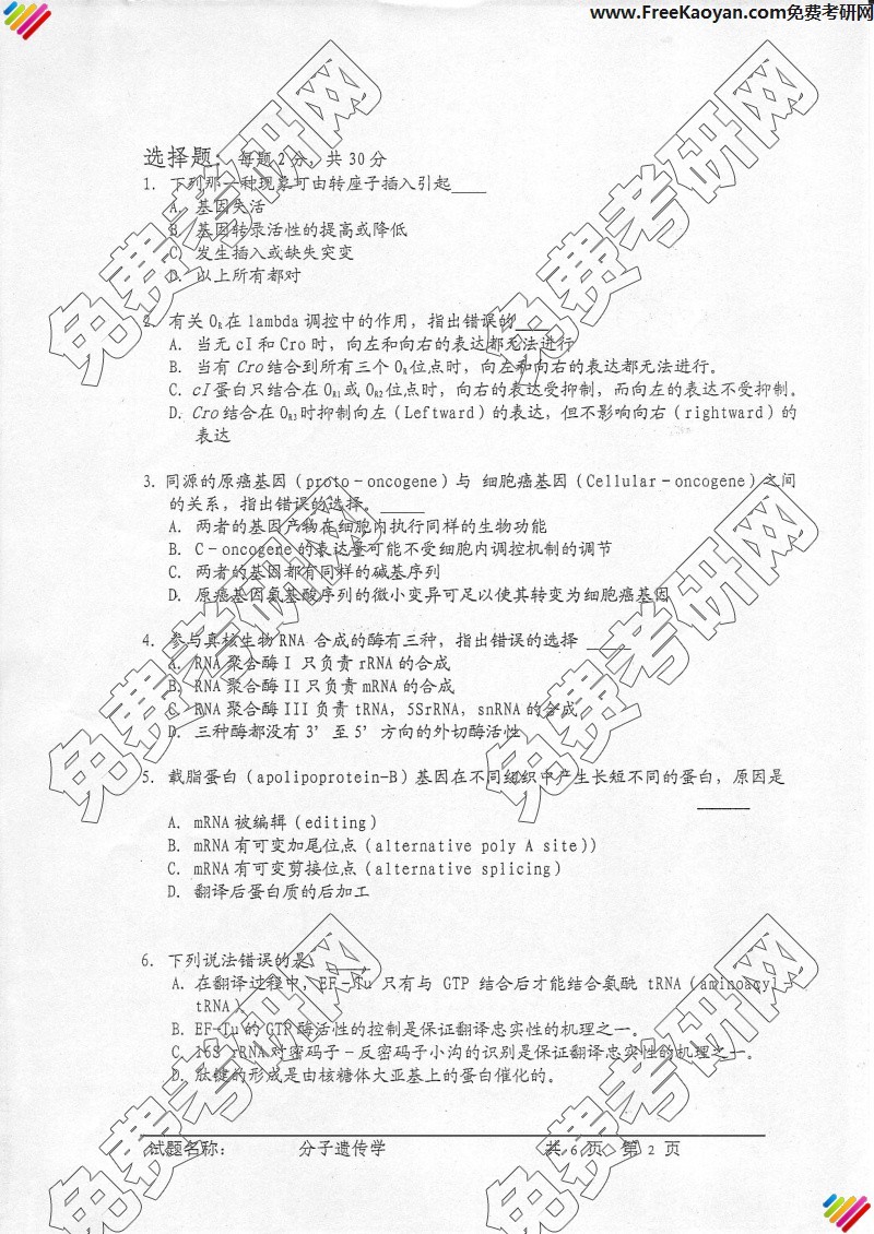 专业课考研经验 本站小编 FreeKaoyan 2018-01-22中国科学技术大学2006年考研真题-细胞生物学