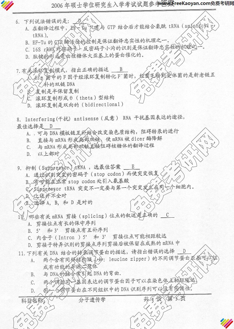 中国科学技术大学2006年考研真题-遗传学答案(3)