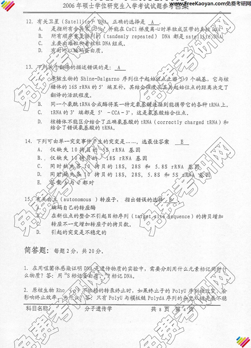 中国科学技术大学2006年考研真题-遗传学答案(4)
