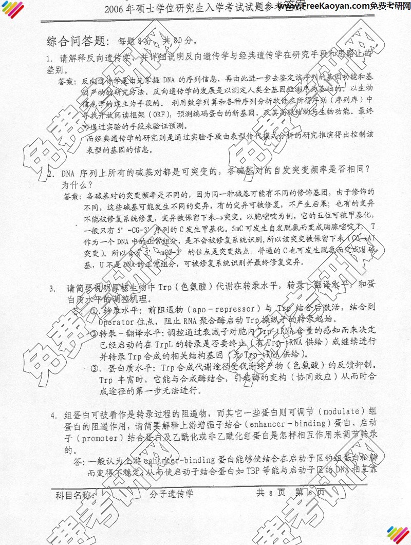 中国科学技术大学2006年考研真题-遗传学答案(6)
