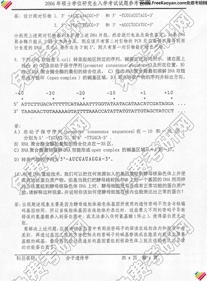 专业课考研经验 本站小编 FreeKaoyan 2018-01-22中国科学技术大学2006年考研真题-生物化学答案