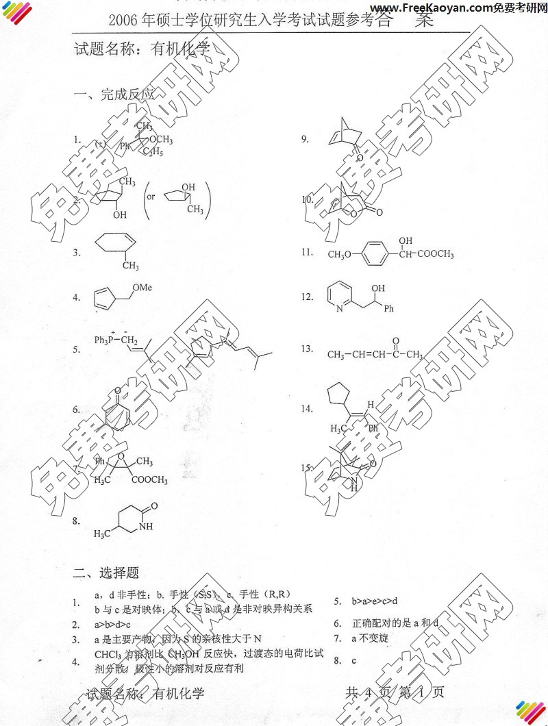 相关话题/考研真题 有机化学 中国科学技术大学 答案