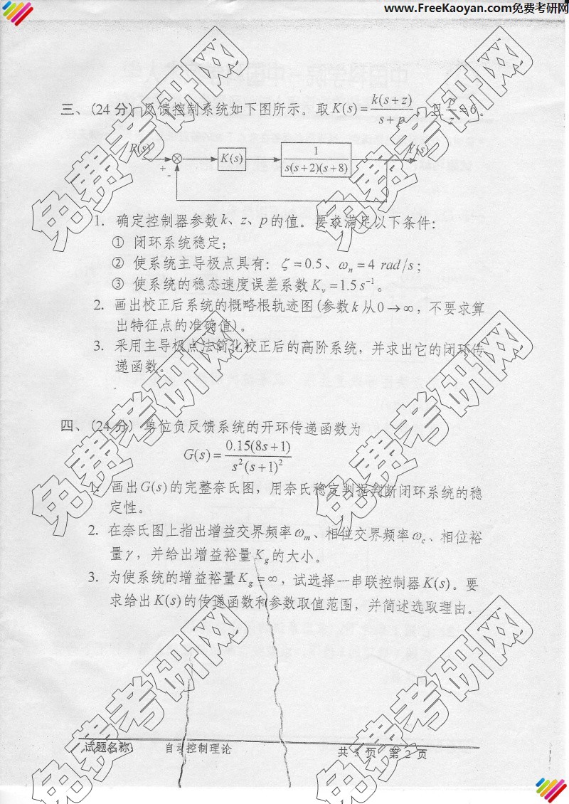 相关话题/中国科学技术大学 考研真题 自动控制理论