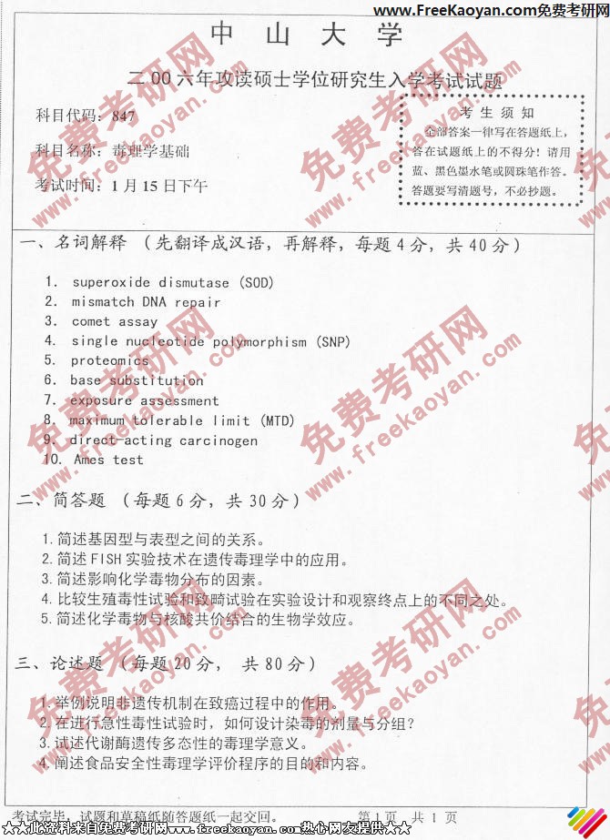 专业课考研经验 本站小编 FreeKaoyan 2018-01-22中山大学2006年考研真题-病理学