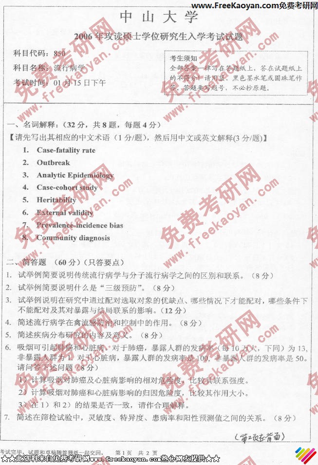 专业课考研经验 本站小编 FreeKaoyan 2018-01-22中山大学2006年考研真题-儿少卫生学