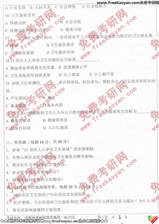 专业课考研经验 本站小编 FreeKaoyan 2018-01-22中山大学2006年考研真题-儿少卫生学