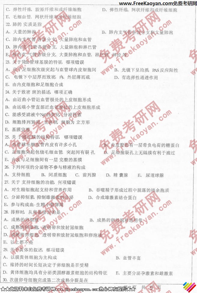 专业课考研经验 本站小编 FreeKaoyan 2018-01-22中山大学2006年考研真题-生理学