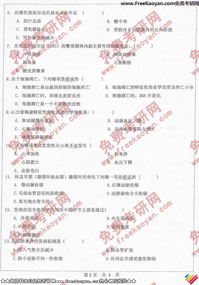 专业课考研经验 本站小编 FreeKaoyan 2018-01-22中山大学2006年考研真题-生理学