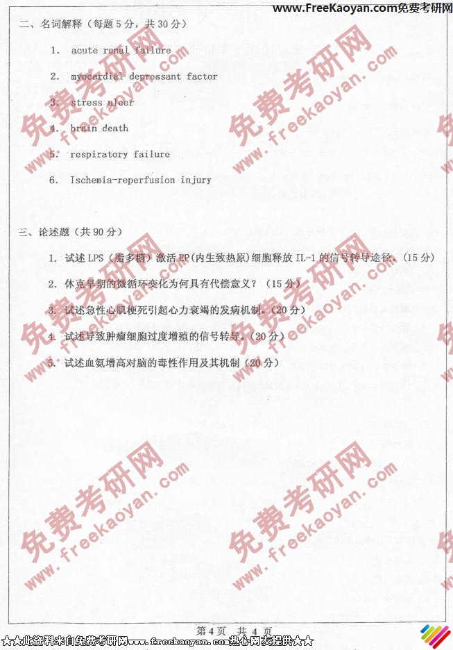 专业课考研经验 本站小编 FreeKaoyan 2018-01-22中山大学2006年考研真题-生理学