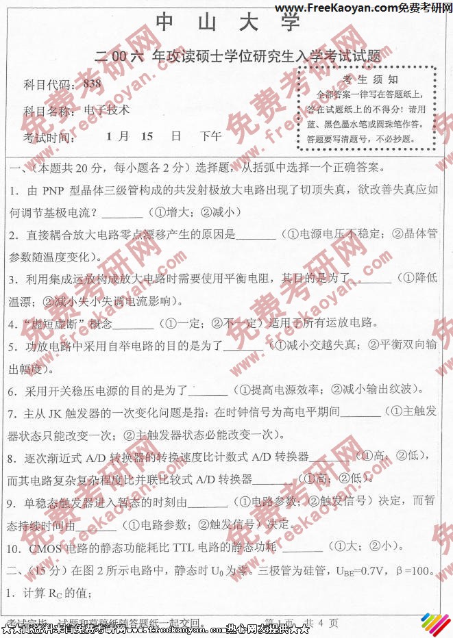 专业课考研经验 本站小编 FreeKaoyan 2018-01-22中山大学2006年考研真题-地下水资源与环境