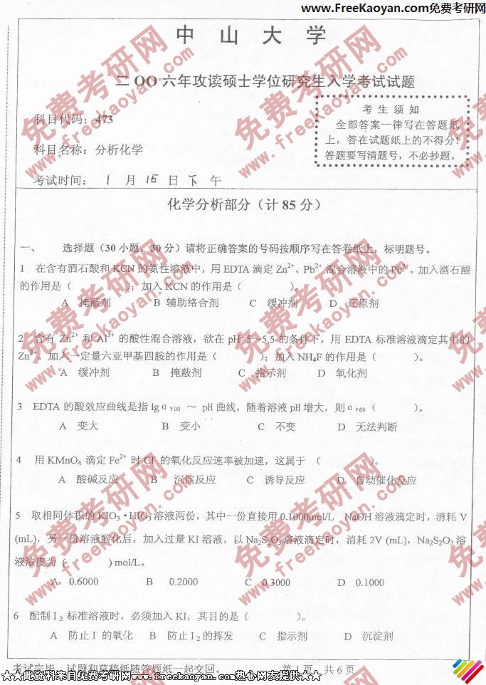 专业课考研经验 本站小编 FreeKaoyan 2018-01-22中山大学2006年考研真题-地下水资源与环境