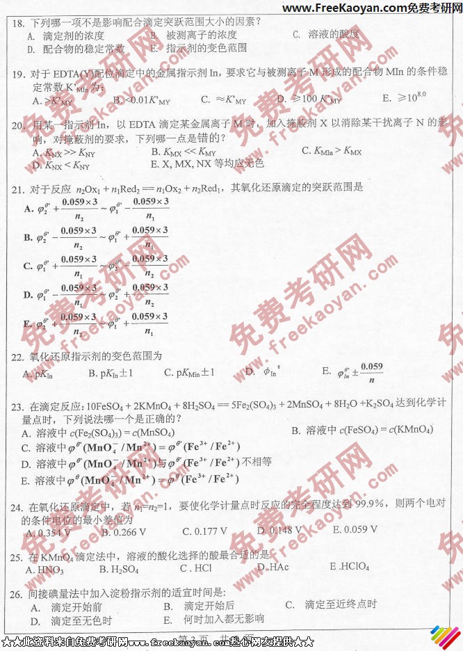 专业课考研经验 本站小编 FreeKaoyan 2018-01-22中山大学2006年考研真题-分析化学473