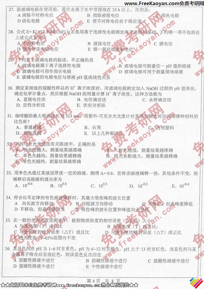 专业课考研经验 本站小编 FreeKaoyan 2018-01-22中山大学2006年考研真题-分析化学473