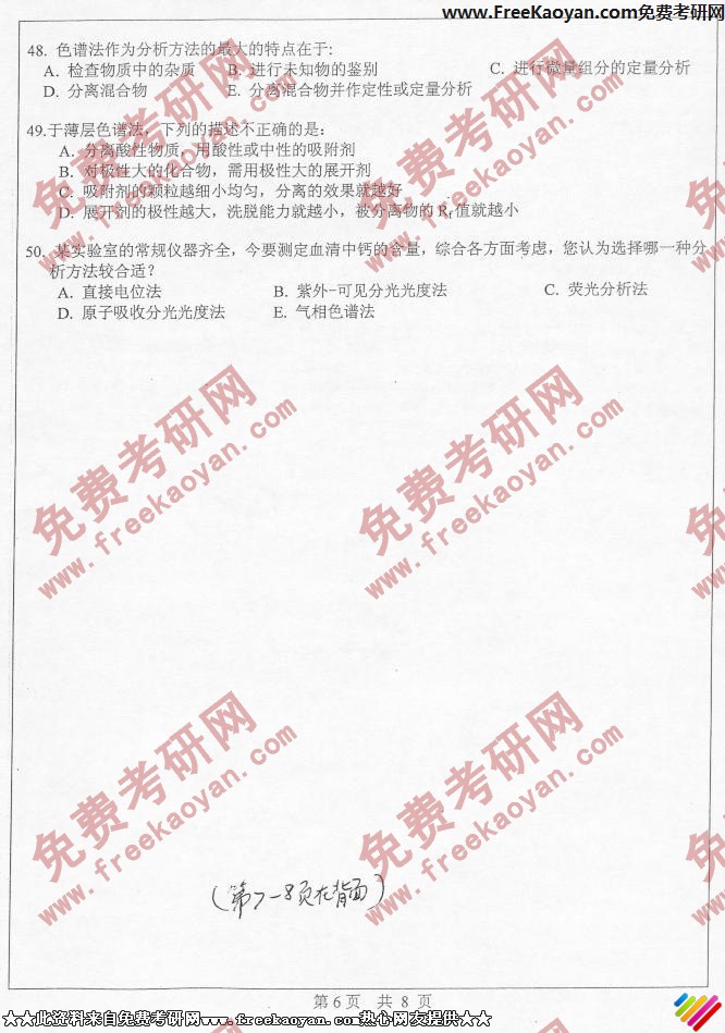 专业课考研经验 本站小编 FreeKaoyan 2018-01-22中山大学2006年考研真题-分析化学473