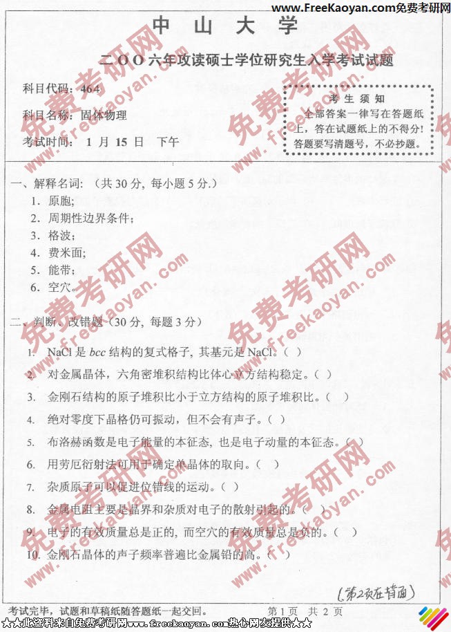 专业课考研经验 本站小编 FreeKaoyan 2018-01-22中山大学2006年考研真题-地下水资源与环境