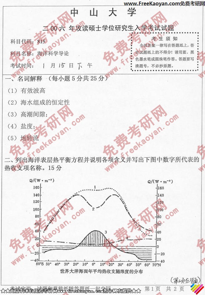 专业课考研经验 本站小编 FreeKaoyan 2018-01-22中山大学2006年考研真题-地下水资源与环境