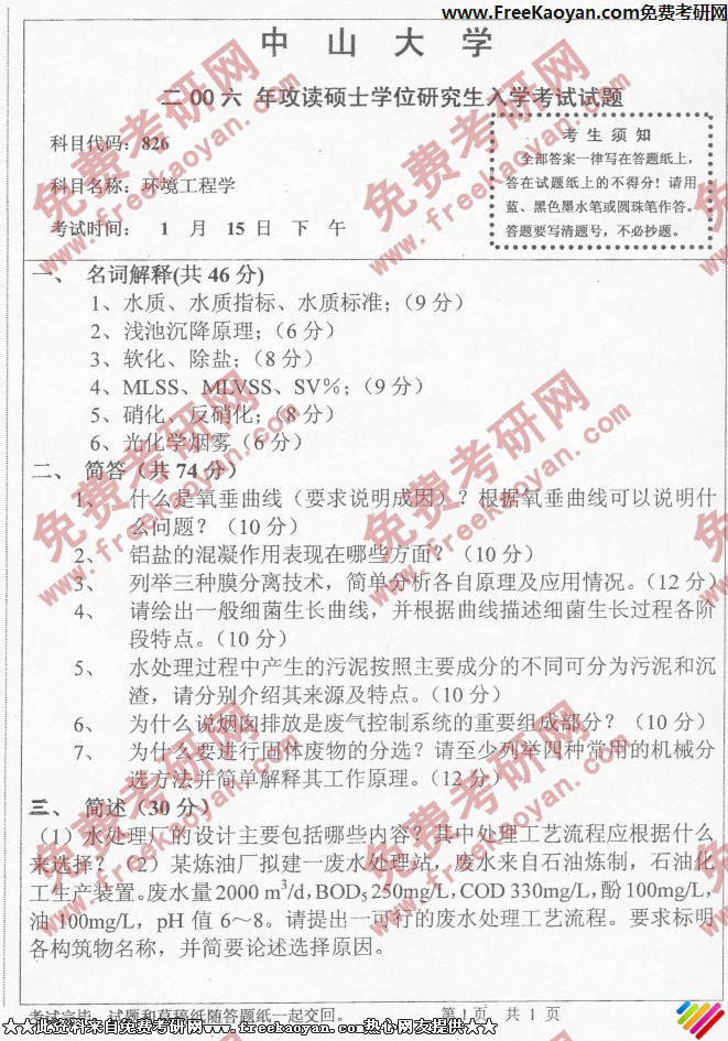 专业课考研经验 本站小编 FreeKaoyan 2018-01-22中山大学2006年考研真题-地下水资源与环境