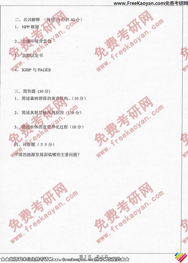 专业课考研经验 本站小编 FreeKaoyan 2018-01-22中山大学2006年考研真题-环境化学