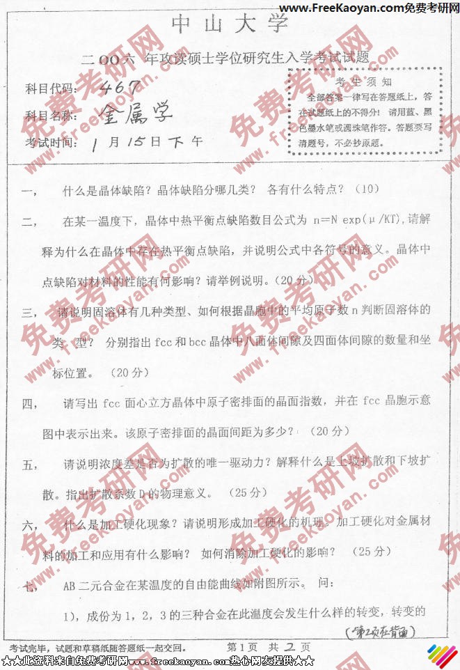 专业课考研经验 本站小编 FreeKaoyan 2018-01-22中山大学2006年考研真题-固体物理