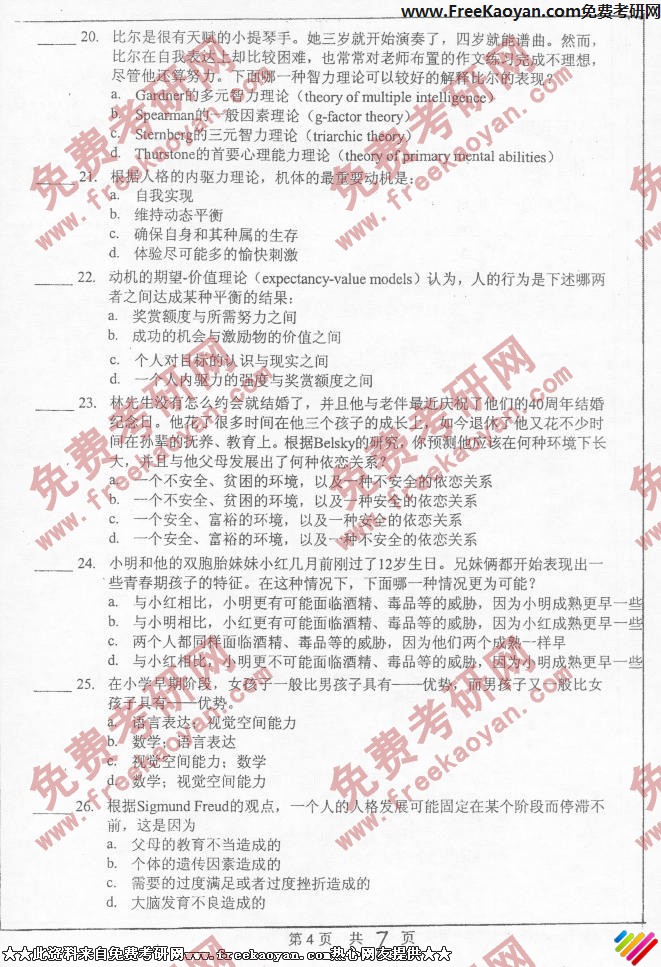 专业课考研经验 本站小编 FreeKaoyan 2018-01-22中山大学2006年考研真题-教育管理学