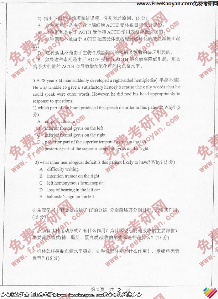 专业课考研经验 本站小编 FreeKaoyan 2018-01-22中山大学2006年考研真题-普通生物化学