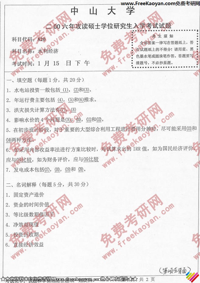 专业课考研经验 本站小编 FreeKaoyan 2018-01-22中山大学2006年考研真题-水力学