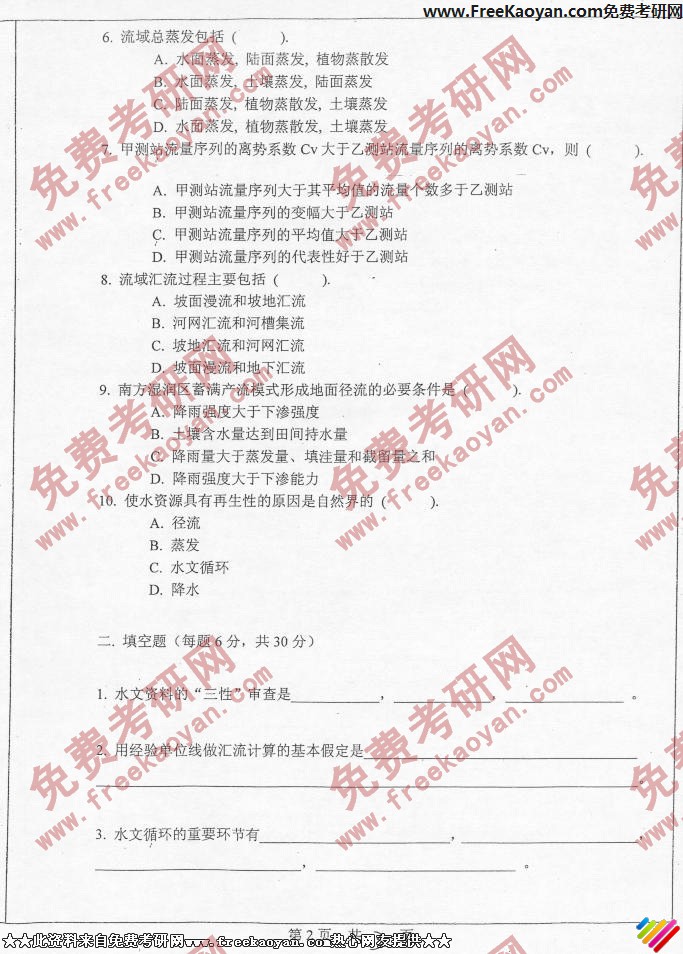 专业课考研经验 本站小编 FreeKaoyan 2018-01-22中山大学2006年考研真题-水力学