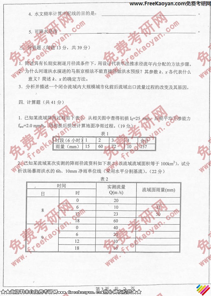 专业课考研经验 本站小编 FreeKaoyan 2018-01-22中山大学2006年考研真题-水力学