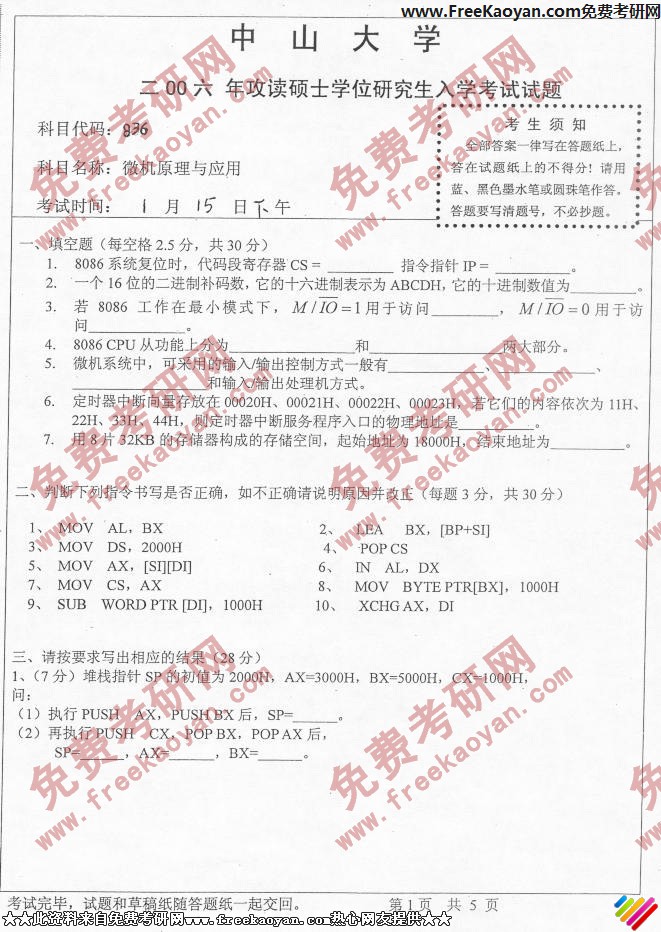 专业课考研经验 本站小编 FreeKaoyan 2018-01-22中山大学2006年考研真题-数据结构