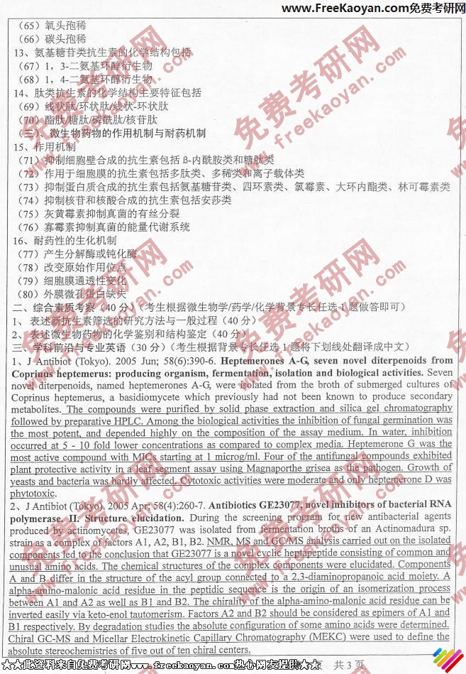 中山大学2006年考研真题-微生物药物学(3)