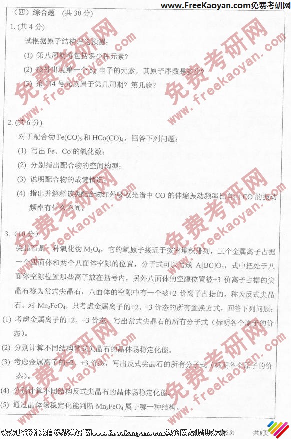 专业课考研经验 本站小编 FreeKaoyan 2018-01-22中山大学2006年考研真题-天然药物化学