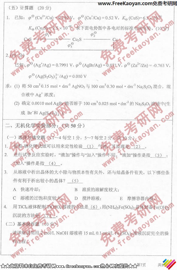 专业课考研经验 本站小编 FreeKaoyan 2018-01-22中山大学2006年考研真题-生物化学