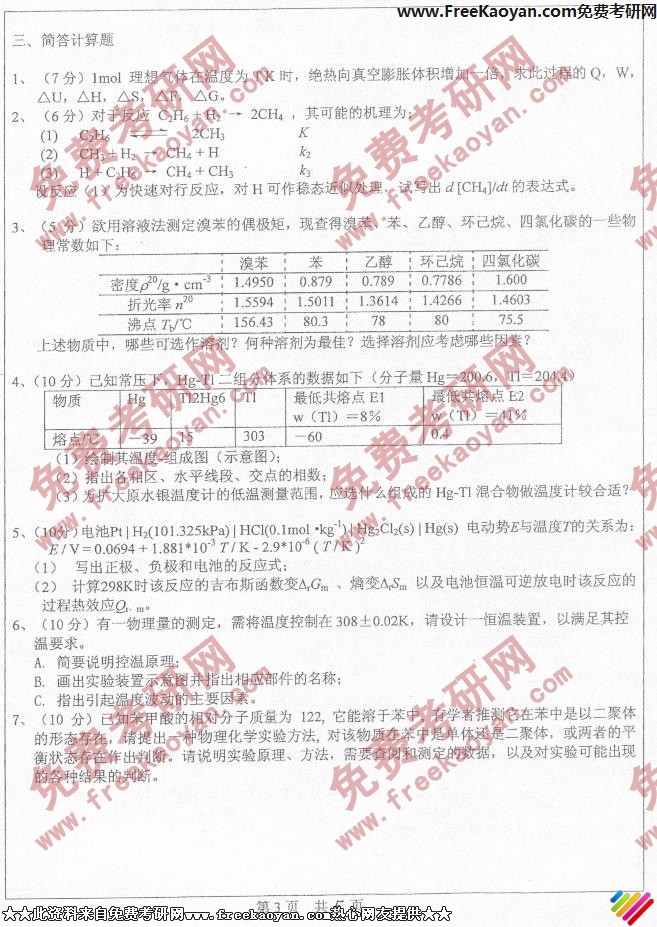 相关话题/中山大学 考研真题 物理化学