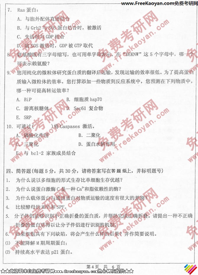 专业课考研经验 本站小编 FreeKaoyan 2018-01-22中山大学2006年考研真题-微生物学